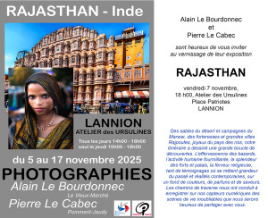 Alain Le Bourdonnec et Pierre Le Cabec (ancien adhérent OIT) exposent à l’Atelier des Ursulines du 5 au 17 novembre : Rajasthan.